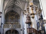 Wojnę przetrwało 40 % wyposażenia, część zabytków znajduje się w muzeach, a pozostałe można zobaczyć we wnętrzu św. Katarzyny. Do najważniejszych z nich należą: obraz Matki Boskiej Bołszowieckiej, malowidła ścienne z XV w., ołtarz patronki, Kaplica Mariacka z obrazem Proroka Jonasza – 1710 r., obrazy z 12-metrowego ołtarza, Wjazd Chrystusa do Jerozolimy – 1654 r. Mnie zainteresowało ośmioboczne, drewniane baptysterium – 1585 r. To właśnie w tym kościele został pochowany sławny astronom Jan Heweliusz.